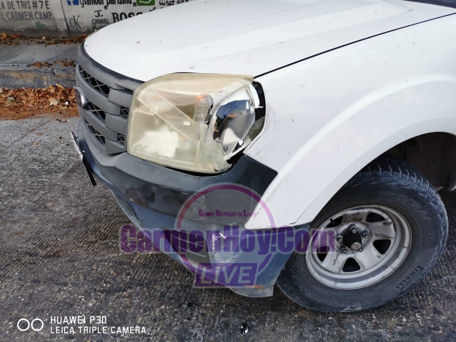 El accidente se registró cuando el conductor de la camioneta Ranger blanca con placas de circulación VS-84-916 de Tabasco sacó demasiado la parte del cofre y fue colisionado por el chófer del urbano con la parte dejándolo con daños en salpicadera, faro y cofre.