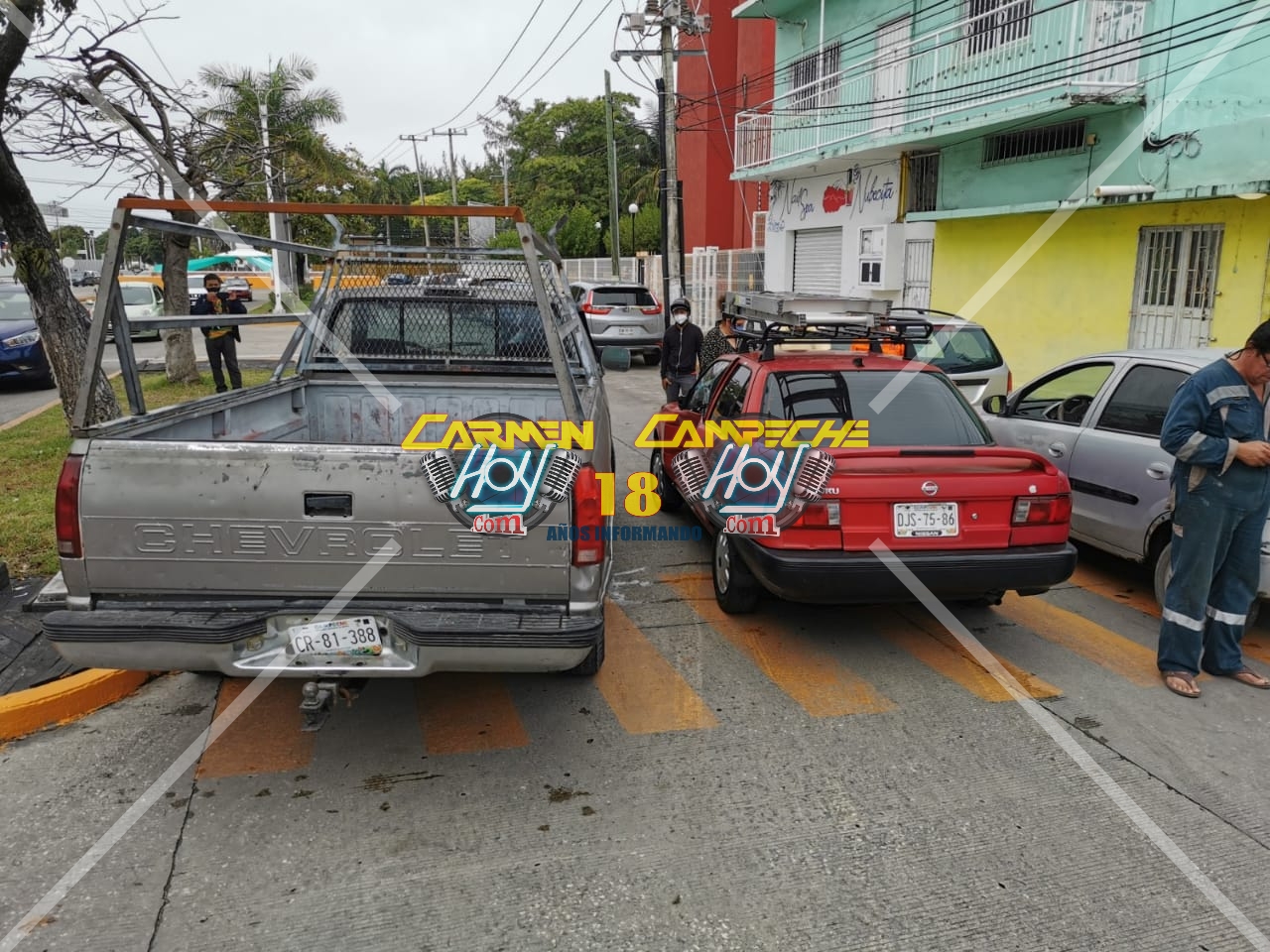 Según la posición final de las unidades, la camioneta Chevrolet color café con matrícula de circulación CR-81-388 del estado de Campeche se pasó el alto de la calle 56 y justamente en el cruce con la 25 el conductor de un automóvil Nissan Tsuru color rojo con placa de circulación DJS-75-86 del estado de Campeche.