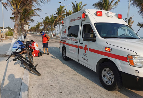 Un hombre que hacía ciclismo en el área de Playa Norte resultó con golpes en el cuerpo al desmayarse cuando se desplazaba en su bicicleta, fue auxiliado por otros ciudadanos que realizaban actividad física en el lugar.