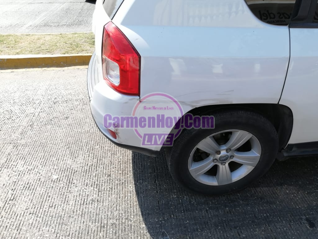 Ocurrió un accidente de tránsito esta mañana entre una camioneta particular de la marca Jeep blanca con placas de circulación DJJ-41-57 del Estado de Campeche misma que fue colisionada por un tanque de gas que transportaban unos motociclistas.