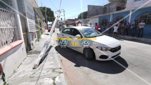 Pero el camino del automóvil responsable continuó hasta impactarse contra un poste de madera propiedad de teléfonos de México (Telmex), al que partió en 3 pedazos, el conductor descendió del auto junto a dos mujeres y fueron interceptados por vecinos de la zona y el propietario del automóvil afectado.