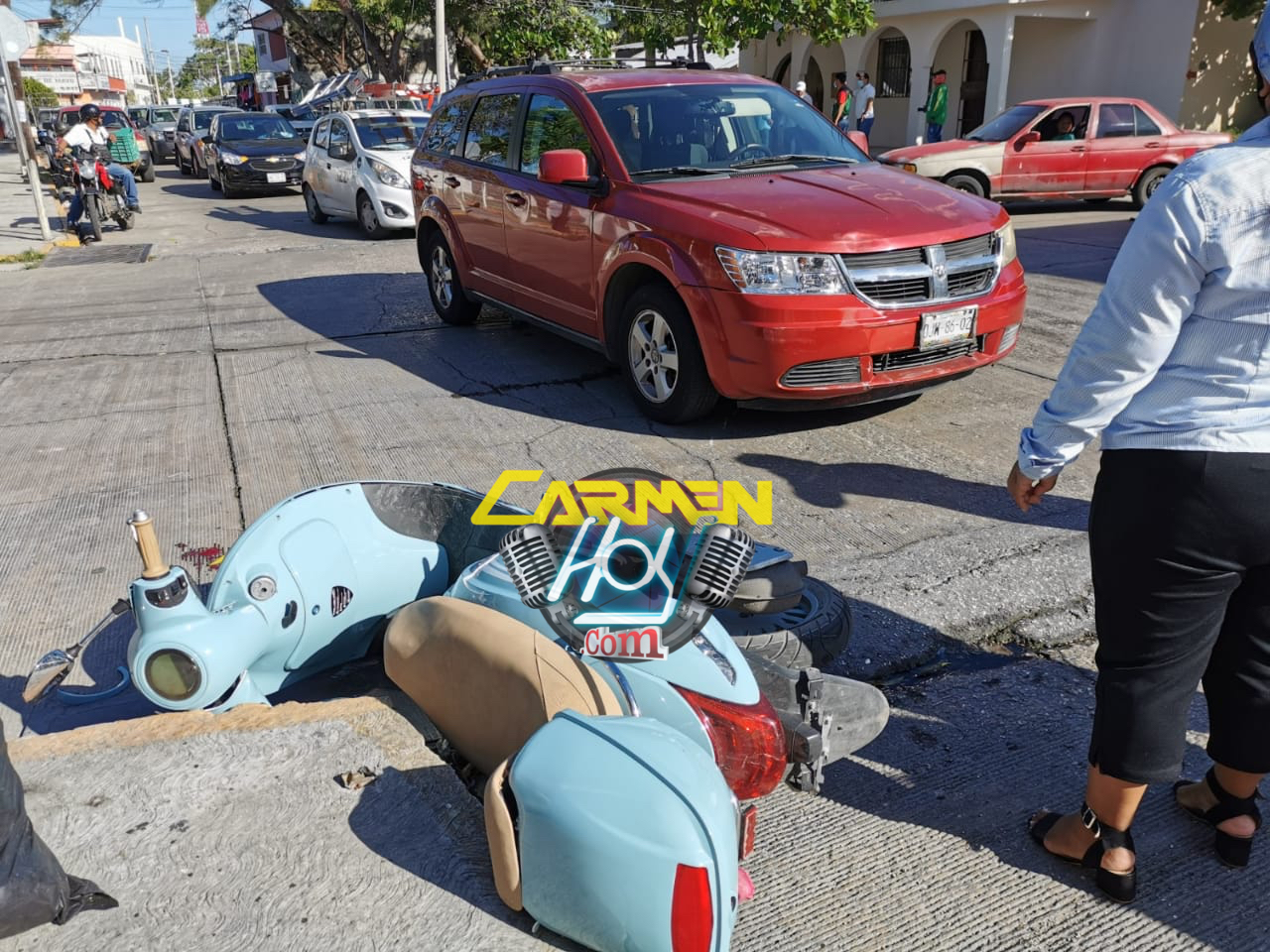 Al llegar al cruzamiento de la calle 66 de la demarcación antes mencionada, el conductor de una camioneta Dodge journey, color rojo con matrícula de circulación DJW-86-02 del estado de Campeche, se pasó el alto para cruzar la calle 37. Lo anterior ocasionó que impactará de frente el costado lateral derecho de la motocicleta, ocasionando severas lesiones a una mujer adulta, causándole fracturas múltiples expuestas, así como también a una joven embarazada.