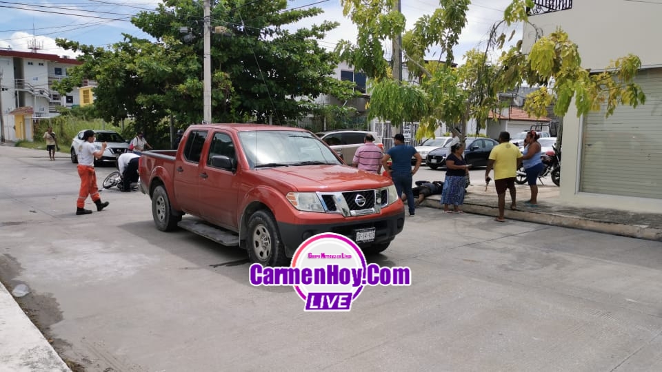 Pero llegando al cruce con la calle 70 de la misma colonia, la imprudente conductora de una camioneta particular tipo Nissan frontier color roja con matrícula de circulación CR-54-437 con registro en el Estado de Campeche, circulaba sobre la calle 70 pero se pasó el disco de alto con señalamiento a la vista.