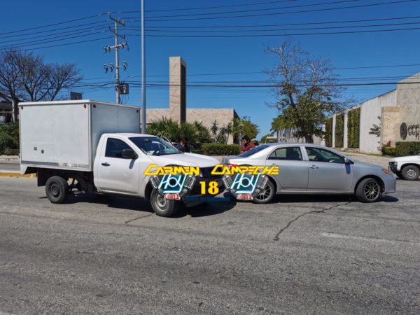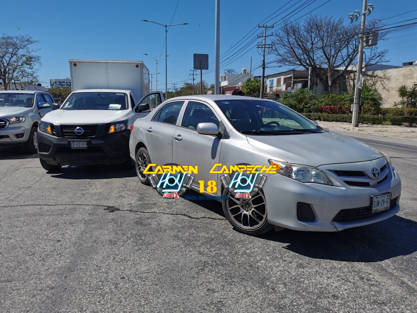 Hechos que ocurrieron alrededor de las 13:00 horas de la tarde sobre la avenida Isla de tris justamente frente a residencial lagos, lugar donde el chófer de una camioneta particular de la marca Nissan NP300, color blanco con matrícula de circulación CR-53-914 el estado de Campeche circulaba sobre la avenida isla de tris con dirección a la carretera federal Carmen Puerto Real, pero fue justamente frente a residencial lagos, que al no guardar su distancia reglamentaria, colisiono por alcance contra un vehículo particular de la marca Toyota color plata con matrícula de circulación DJW-29-57 del estado de Campeche, cuyo conductor se encontraba posicionado en el retorno de dicha avenida, pero fue impactado por el chófer de la camioneta el cual según su versión, para evitar colisionar contra un Tractocamión.