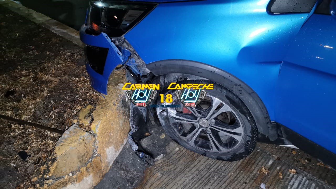 Fue alrededor de las 00:15 horas de la media noche, cuando el conductor de una camioneta de la marca JAC X25, color azul con matrícula de circulación DJT-35-60 del estado de Campeche, circulaba sobre el carril preferencial de la avenida Del mar del fraccionamiento Bivalvo por la calle almendros, el conductor reduce la velocidad para reincorporarse a dicha vialidad, pero al estar más calles anegadas por la intensa lluvia que cayó durante la noche, los neumáticos de la unidad derraparon y el conductor terminó por montar al camellón.