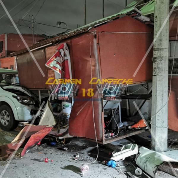 Los hechos se registraron cuando la joven guiadora de una camioneta Mitsubishi L200, color blanco con matrícula de circulación CV-8971-C del estado de Chiapas conducía su camioneta cual bólido sobre la avenida 55 de la colonia San Carlos, desafortunadamente el estado etílico que mantenía hizo que perdiera el control y tras derrapar término impactándose de frente contra un puesto de comida rápida al cual destruyó por completo.