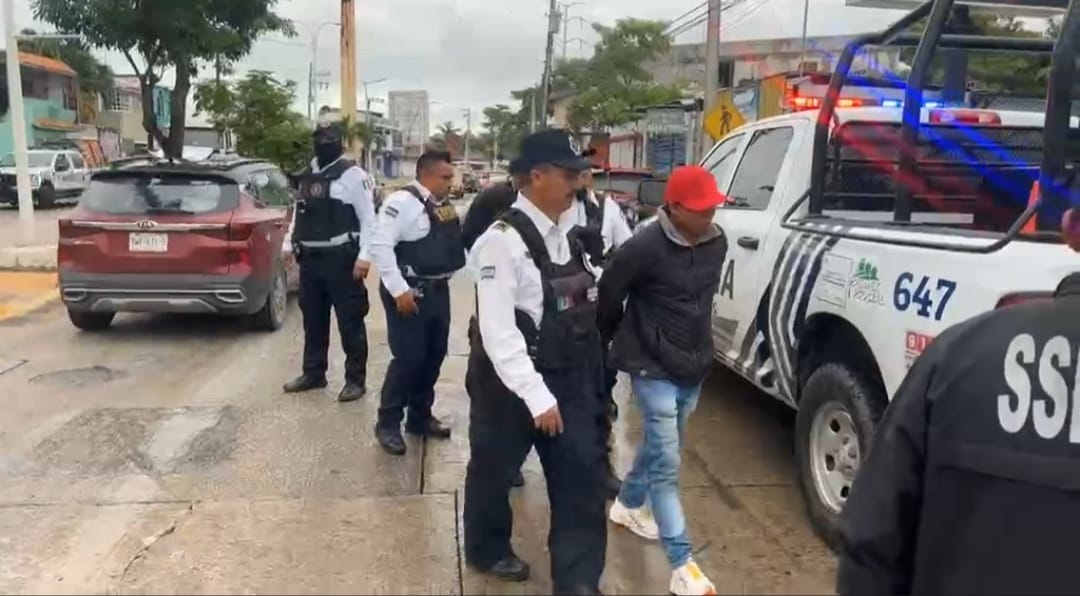 Uno de los ocupantes de la camioneta descendió de la unidad y emprendió la huida con rumbo desconocido, mientras los otros dos fueron detenidos por elementos de la policía, por presunto robo de vehículo.