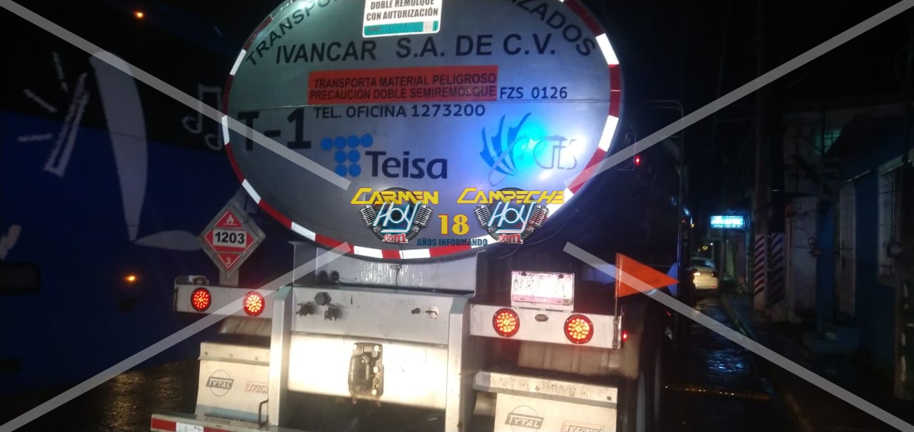 Elementos de seguridad pública aseguraron un tráiler que transportaba diesel luego de causar destrozos en las mufas de varios domicilios localizados sobre toda la avenida 10 de julio; a pesar que responsable intentó darse a la fuga fue detenido en la colonia San Miguel.