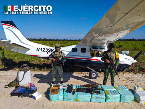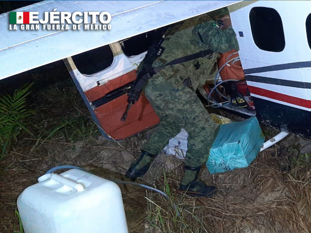 Como resultado del seguimiento efectuado, se pudo determinar que la aeronave aterrizaría en el municipio de ciudad del Carmen, Campeche, por lo que tropas jurisdiccionadas a la 33/a. Zona Militar, que ya se encontraban en el área, lograron asegurar la aeronave con los resultados siguientes: