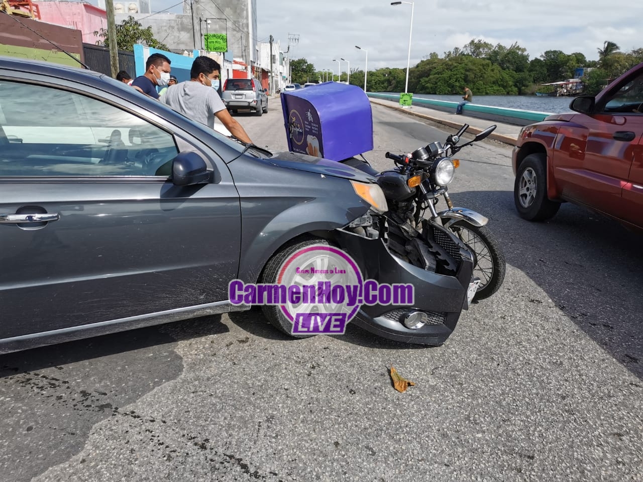 El accidente se dio cuando el joven motorista a bordo de una motocicleta honda color gris con matricula de circulación 03CSN4 con registro en el estado de Campeche y propiedad de conocida pastelería, circulaba sobre la preferencia de la avenida malecón de la caleta con dirección a la colonia electricistas.