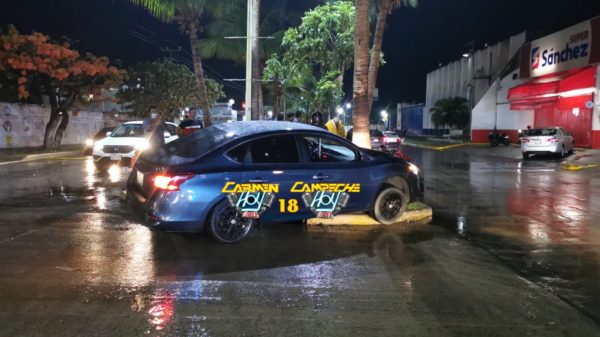 Fue alrededor de las 21:45 horas de la noche, cuando el conductor de un automóvil particular de la marca Nissan Sentra, color azul con matrícula de circulación DKD-84-05 del estado de Campeche, conducía en presunto estado de ebriedad a toda velocidad sobre la calle 35-A de la colonia San Agustín del Palmar en el cruce con la avenida Periférica Norte, no extremo precauciones por lo que su impacto de frente contra el camellón central de la avenida, terminando un barrote de concreto por calzar el vehículo por debajo, por lo que el propietario junto con dos amigos más que se encontraban presuntamente en estado de ebriedad trataron de sacar el vehículo pero lo consiguieron.