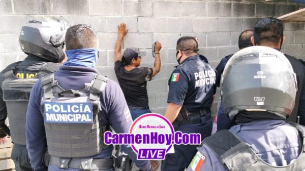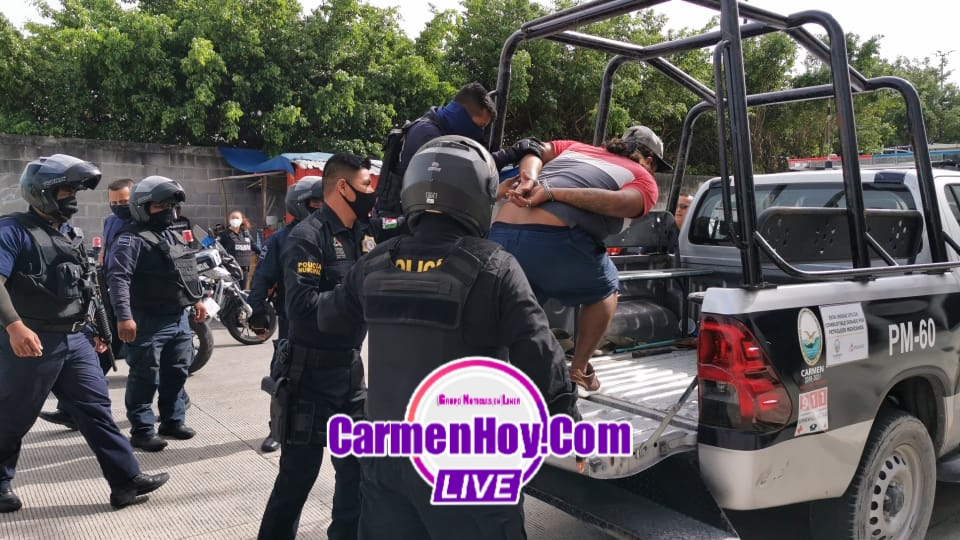 Agentes motorizados pasaron cerca el y se percataron de que se encontraba uno de los sospechosos sentado como si nada hubiese pasado donde rápidamente lo interceptaron y comprobaron que efectivamente se trataba de uno de los sospechosos, este fue esposado y abordado a la paila de la patrulla marcada con el número económico PM-60 para ser llevado de inmediato a la vicefiscalía.