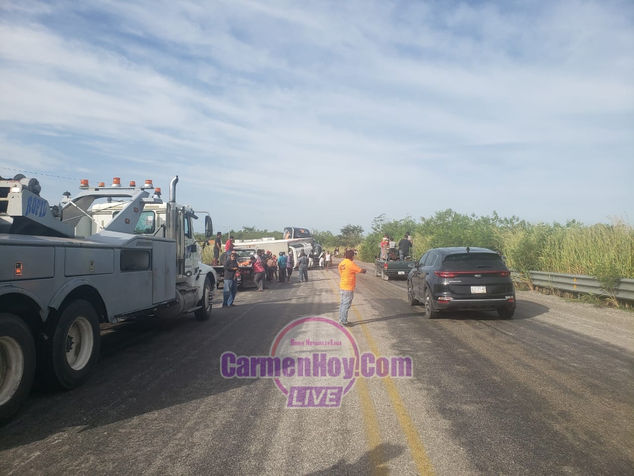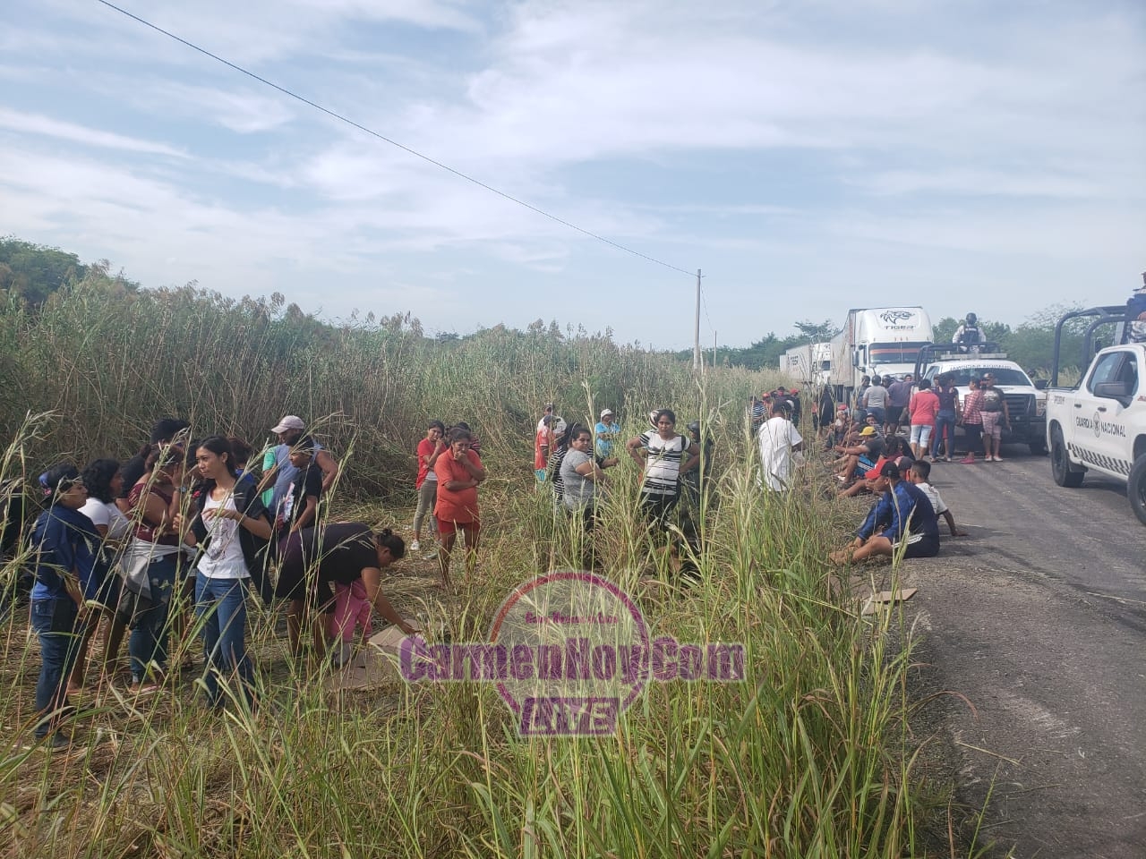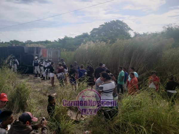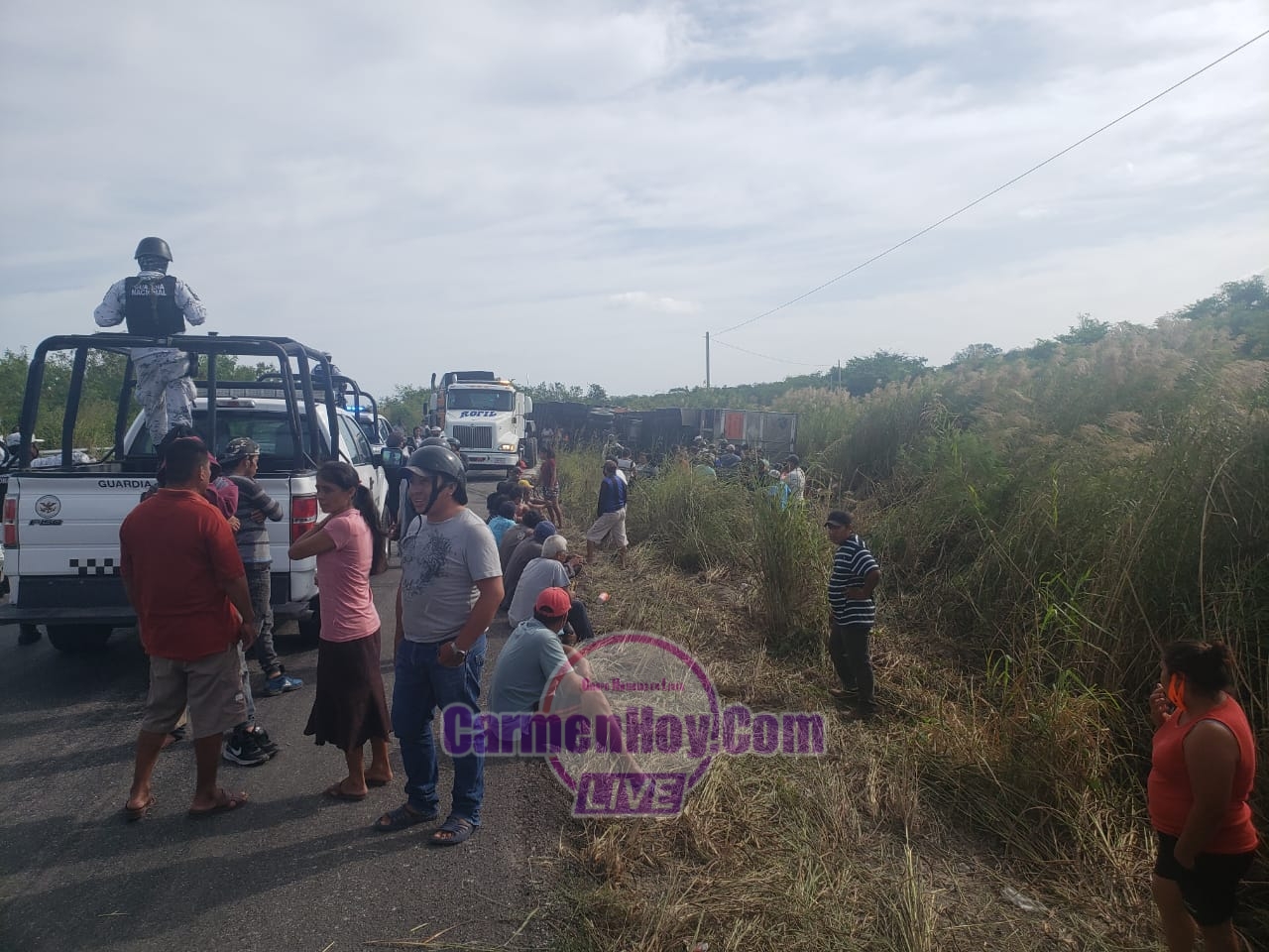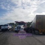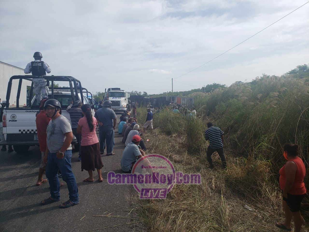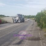 Un tráiler con productos refrigerados se salvó de ser rapiñado, luego de volcar en el kilómetro 122 de la carretera Matamoros- Puerto Juárez, rumbo a la Ciudad de Campeche cerca del complejo Akbal.
