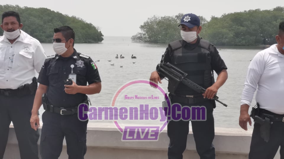 👮‍♂️Autoridades persiguen a un grupo de sujetos presuntamente armados quienes cometieron un asalto, los buscan por mar en el bote de la dirección de seguridad pública.