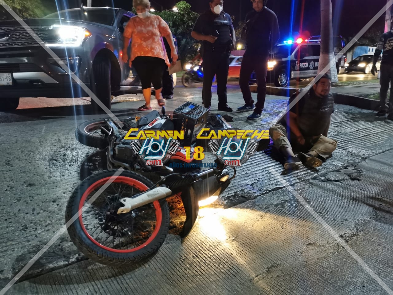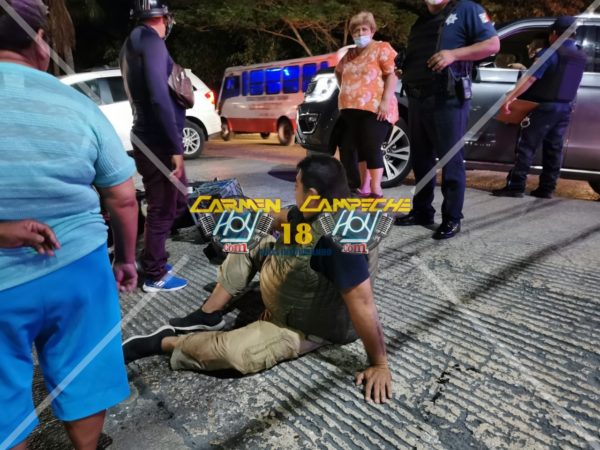 Los hechos se registraron alrededor de las 22:00 horas cuando el conductor de una camioneta Ford Expedition, color gris, con placas DKD-51-98 de Campeche, circulaba exceso de velocidad sobre la avenida periférica norte de la colonia Primero de Mayo al llegar a la altura del cruce con la Calle 37 no respeto su distancia correspondiente impactado por alcance una Motocicleta Italika, DM150, color naranja, sin matricula de circulación, la cual provocó que el hombre saliera proyectado al pavimento resultando con lesiones en el cuerpo.