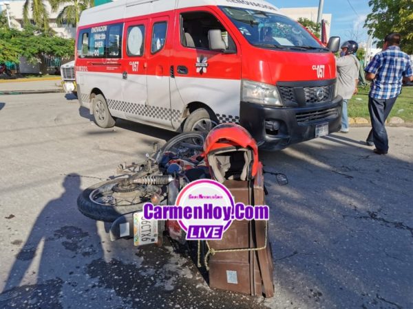 La combi marcada con el número económico 057 y placas de circulación 68-54-BFB con registro en el Estado de Campeche intentaba retornar sobre la avenida Santa Isabel pero se voló el alto ocasionando dicho accidente, el lesionado fue atendido por técnicos en urgencias de la Cruz roja mexicana.