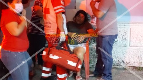 Por el impacto, la mujer fue proyectada contra el carro de hot dogs y sufrió lesiones en el abdomen por lo cual fue necesaria la presencia de paramédicos de la Cruz Roja quienes la trasladaron a una clínica particular para su atención médica.