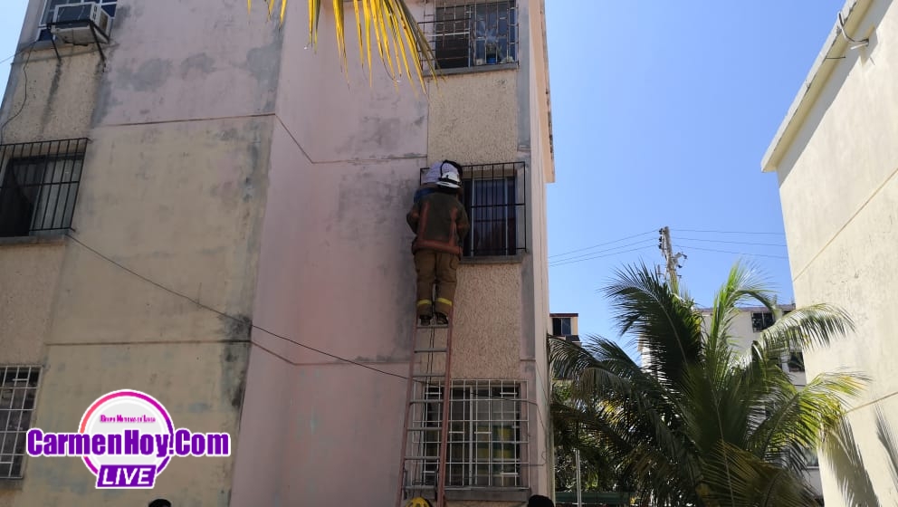 Como toda una mujer araña una joven de nombre Flora de aproximadamente 20 años de edad fue rescatada por el cuerpo de bomberos locales de Ciudad del Carmen, esto luego de que se quedara atrapada en un sexto nivel del edificio donde vive ya que al extraviar las llaves de su apartamento se le ocurrió la alocada idea de descender del mismo desde la ventana de su domicilio pero al ver que los pies no le alcanzaban hasta el protector de la siguiente ventana se quedó al menos 15 minutos atrapada en las alturas.