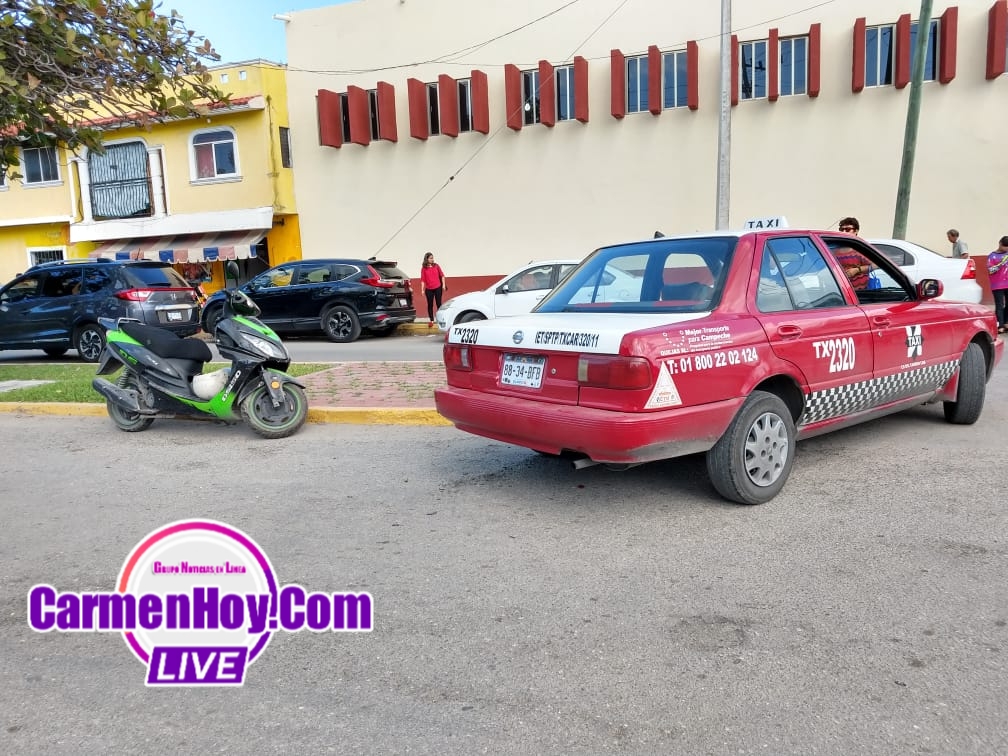 La imprudencia de un taxista causo daños a una motocicleta quién era guiada por un joven haciéndole corte de circulación en la colonia Santa Rosalía.