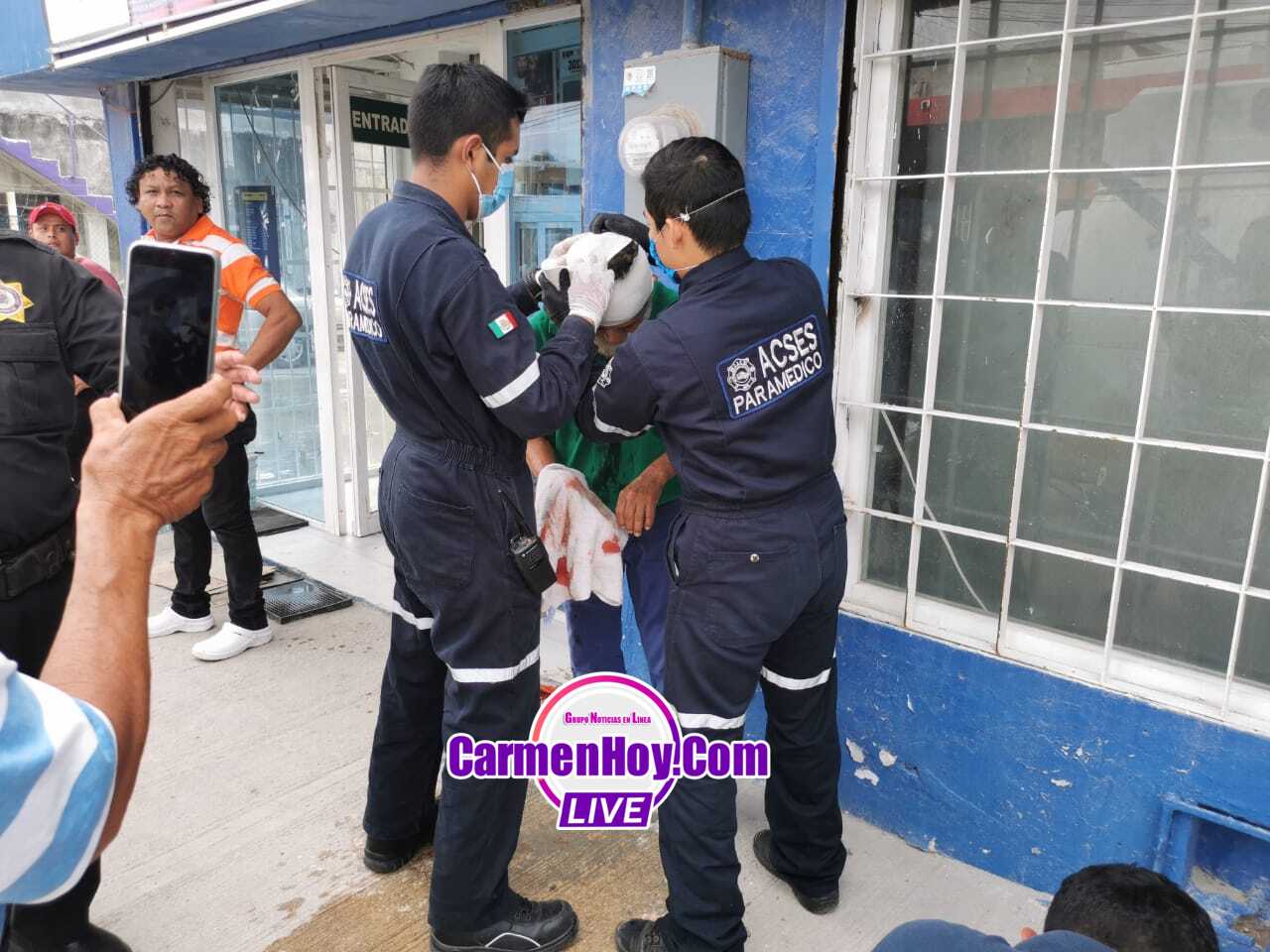 A la llegada de los agentes de la policía estatal preventiva encontraron a un sujeto de la tercera edad desangrado en el interior del six solicitando inmediatamente la presencia de una ambulancia, al sitio acudieron personal de bomberos tácticos quienes valoraron y atendieron al lesionado quien presentaba una herida penetrante en la cabeza ya que le reventaron un madero en la cabeza.