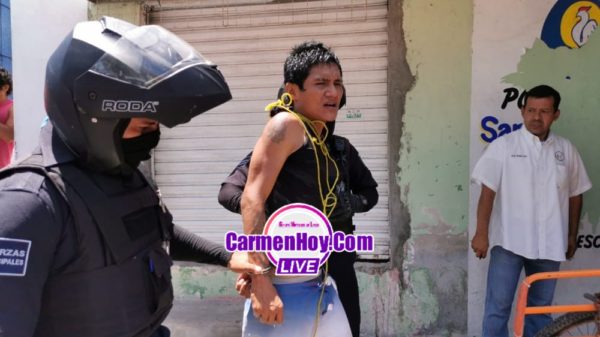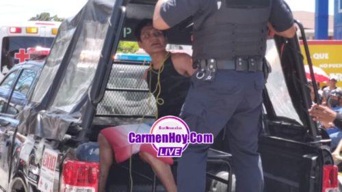 Golpeado y adolorido en una de las muñecas fue subido a la paila de la patrulla para ser llevado ante el agente del ministerio público en la comandancia municipal de Carmen, donde quedará al menos 72 horas hasta que se presente el afectado a levantarla formal denuncia para proceder.