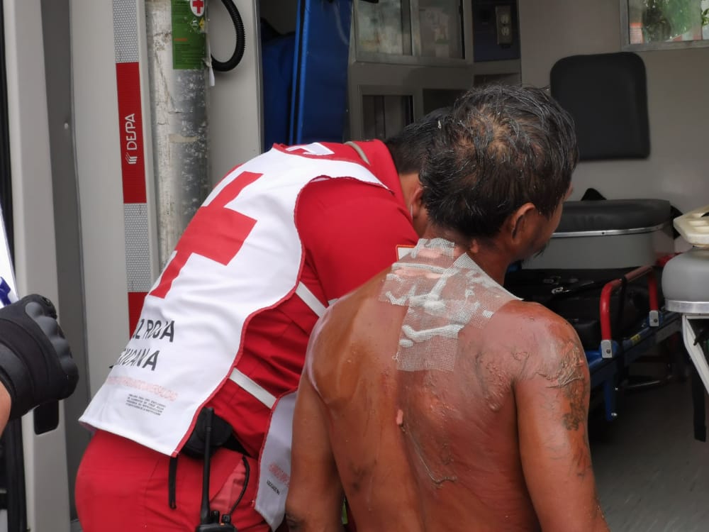 Los hechos se dieron en punto de las 14:20, cuando vecinos de la calle 57 entre 62 y 64 de al colonia Morelos, solicitaron a los números de emergencia 9-1-1 la presencia de una ambulancia ya que un vecino de la zona presentaba fuertes quemaduras en toda la espalda, parte del pecho y brazos, tras verse involucrado en una riña familiar.