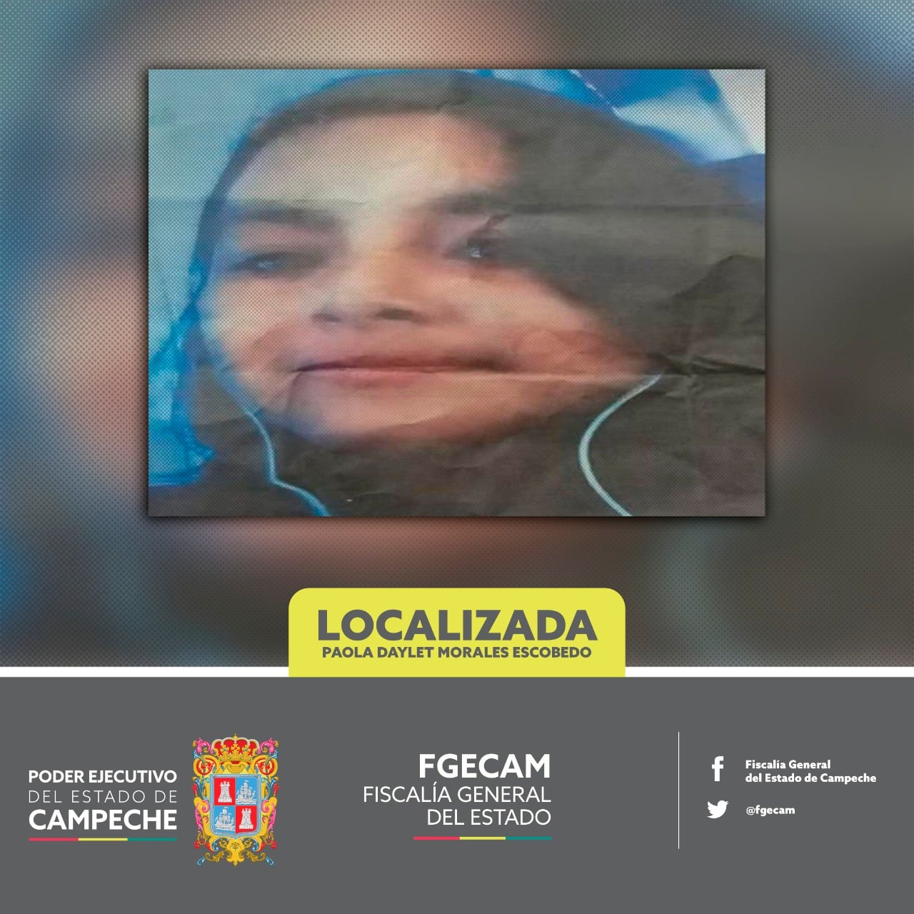 La FGECAM da a conocer que la adolescente Paola Daylet Morales Escobedo, quien tenía reporte de persona no localizada, se encuentra de regreso en su domicilio en Ciudad del Carmen.