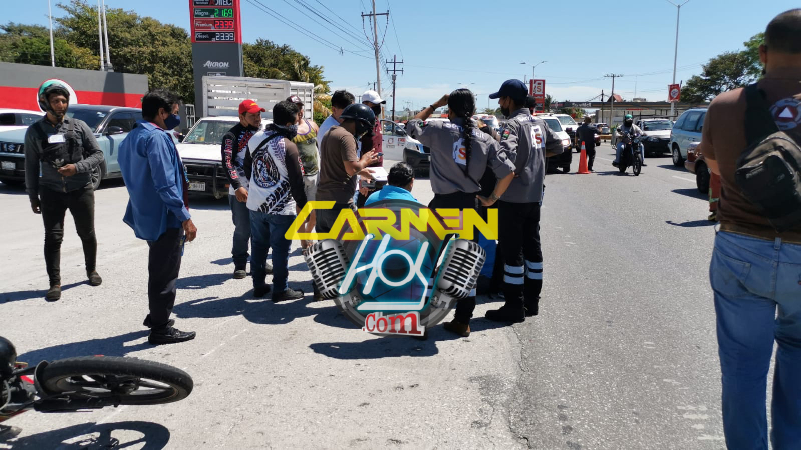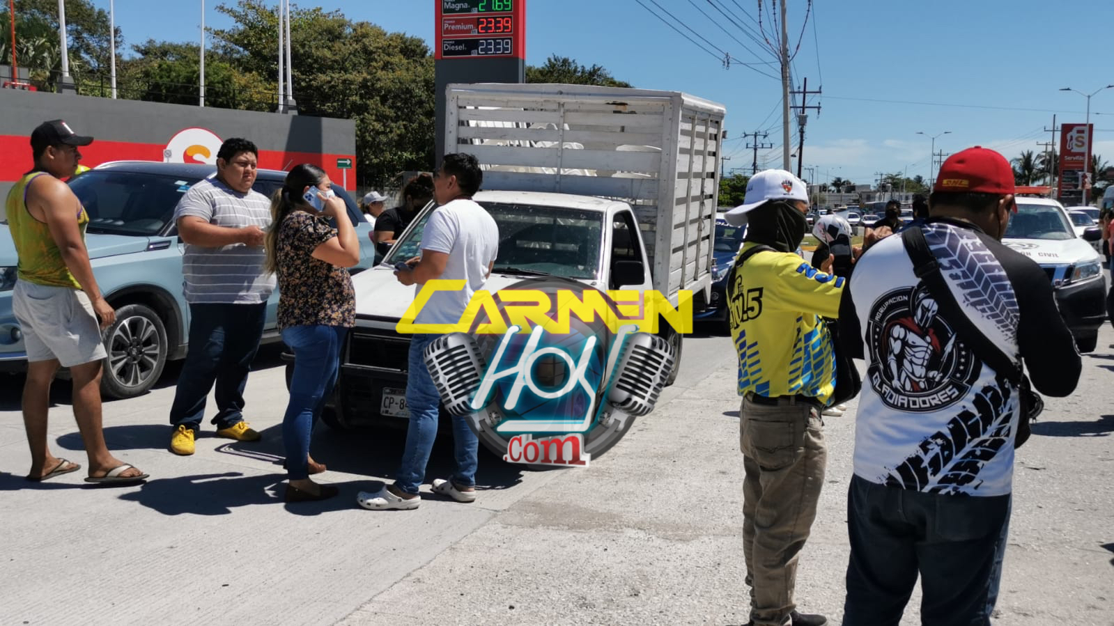 Una pareja de jóvenes se desplazaba en una motocicleta Italika, color negro con rojo y matrícula de circulación del Estado de Campeche, Sobre la avenida isla de Tris con rumbo hacia la avenida 10 de julio al llegar a la gasolinería nueva “Servifácil”, el conductor de una camioneta Nissan, NP300 estaquita, color blanco con matrícula de circulación CP-84-115 del estado de Campeche, los rebasó el por el carril izquierdo y posteriormente les cerró el paso invadiendo el carril derecho.