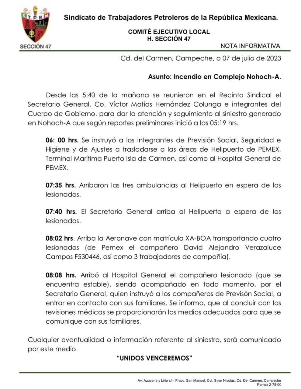 1- Pemex David Alejandro Verasalud Campos F-530446 quemaduras de 1er y 2do grado en cara, cuello y ambas maos tel 7393951307
