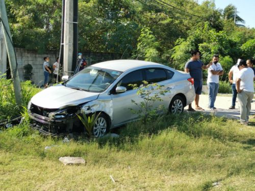 Tras el aparatoso choque otra unidad de la marca Nissan Versa, color plata con matrícula de circulación DJV-60-44 del estado de Campeche, no logro esquivar al vehículo rojo tras el impacto y colisionó contra el para terminar sobre el acotamiento con severos daños en su unidad.