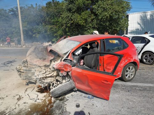 Fue cerca de las 9:05 horas la mañana del primero de enero del 2022, cuando sobre el kilómetro 10 de la carretera Carmen – Puerto Real a la altura de la gasolinera “FullGas” se registró un carreterazo de frente entre dos vehículos particulares dañando a un tercero.