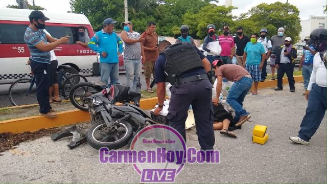 Los hechos se registraron alrededor de las 10:40 horas de la mañana del sábado cuando la conductora de una Motocicleta Italika color negro con placas WEJ5N de Campeche, circulado en preferencia Sobre la avenida isla de Tris sobre el carril de alta circulación.