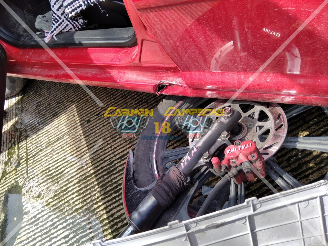 Los hechos se registraron alrededor de las 12;30 horas, sobre la avenida 55 esquina con 56 y 58 de la colonia Morelos, lugar donde el Conductor de un automóvil Volkswagen Jetta, color rojo con placas de circulación DJR-44-38 del estado de Campeche circulaba sobre la avenida 55 con dirección a la 55, pero al llegar al cruce con la 58, intentó dar vuelta a la izquierda para reincorporarse a dicha calle, haciendo un corte de circulación al guiador de la motocicleta Honda, color blanco con matrícula de circulación 52CVK4 del estado de Campeche.