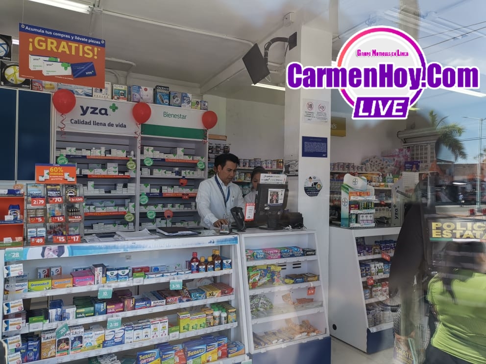 Segundo asalto a comercio del día en esta ocasión la farmacia asaltada se encuentra ubicada sobre la avenida puerto de Progreso por avenida Belisario Domínguez de la colonia Plutarco Elías Calles lugar hasta donde arribaron dos sujetos a bordo de una motocicleta quienes con cuchillo en mano despojaron a las cajeras de $650 en efectivo así como también algunos productos de la farmacia.