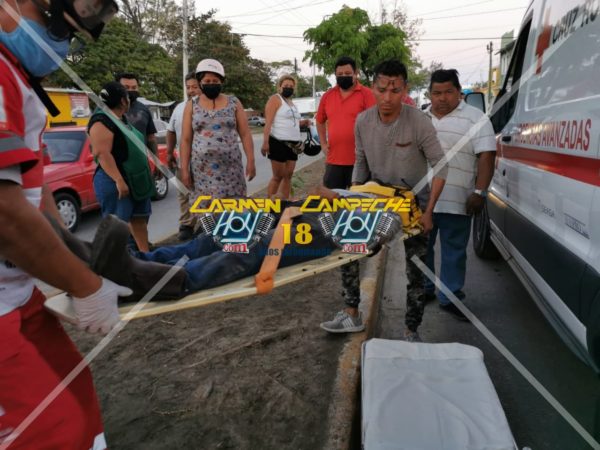 Fue alrededor de las 18:30 horas, que el ciudadano de aproximadamente 46 años de edad, se desplazaba en su motocicleta de la marca Italika, color negro con amarillo y matrícula de circulación 19CVL6 del estado de Campeche con dirección a su domicilio iba transitando sobre la avenida camarón por calle 62 de la demarcación antes mencionada, justamente al llegar frente al templo “Aposento Alto” según versiones médicas, sufrió un posible infarto que lo llevo a perder el conocimiento, así como el control de la motocicleta, la cual se proyectó contra la guarnición.