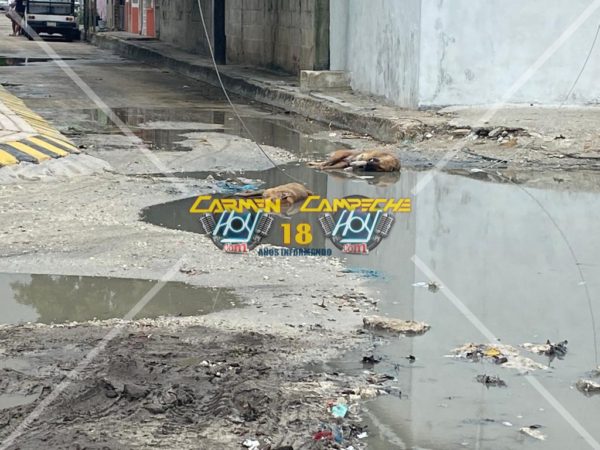 Dos caninos pierden la vida electrocutados en un charco de la colonia manigua luego de que sobre este, cayera un cable de alta tensión de la Comisión federal de electricidad.