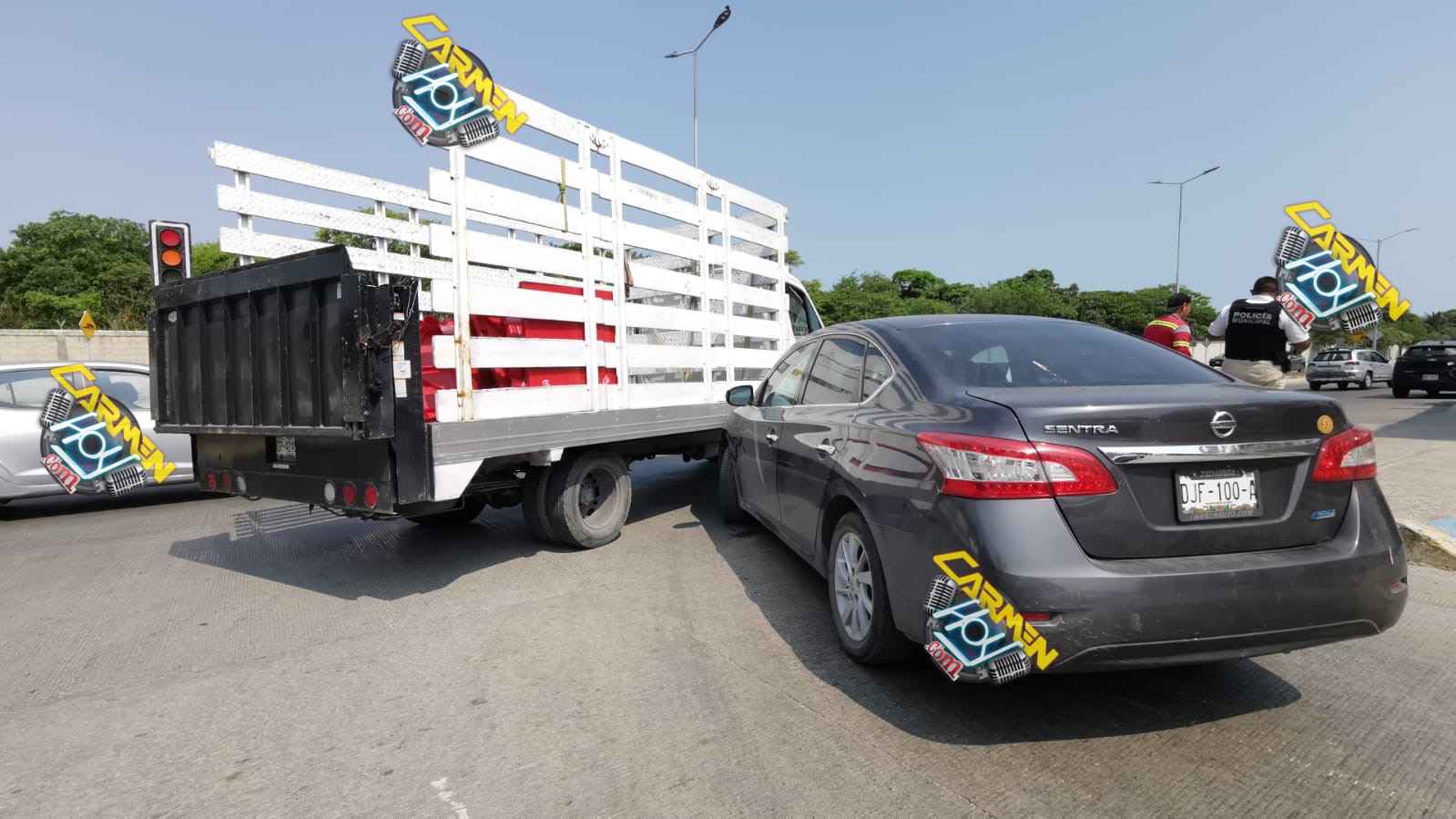 Este hecho de tránsito ocurrió alrededor de las 9:40 horas de la mañana, sobre el cruce de la avenida lirios por avenida Boquerón del Palmar del fraccionamiento puente la unidad, lugar donde según la posición final de las unidades tanto el conductor de la camioneta Volkswagen, color blanco, con matrícula de circulación CP-4245-A del estado de Campeche, propiedad de la compañía ‘Cristal’.