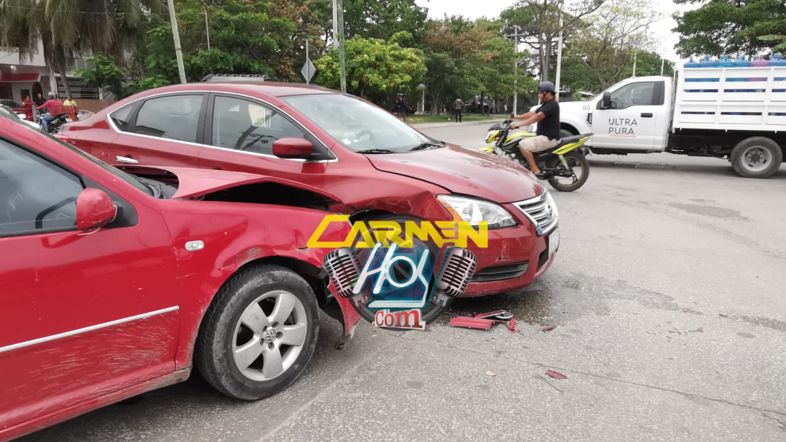 Desafortunadamente al llegar al cruce con la avenida Puerto de Campeche de la colonia Renovación Primera Sección, no realizo su alto total por lo que al cruzar sin la mínima precaución, fue Impactado sobre el costado lateral derecho por el conductor de un automóvil particular de la marca Volkswagen Jetta, color rojo con matrícula de circulación DJU-18-98 del estado de Campeche. Este segundo vehículo avanzaba en aparente preferencia con dirección al parque central, tras el impacto las unidades quedaron bloqueando parte de la vialidad de hasta la llegada de agentes de la dirección de Seguridad Pública del departamento de vialidad y tránsito municipal, quiénes tras levantar evidencia fotográfica, solicitaron a los involucrados orillar las unidades.
