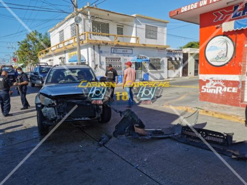 Siendo el segundo vehículo quien llevara la preferencia, y tras recibir el impacto de la camioneta en el costado lateral izquierdo, perdió el control y se proyecto contra la fachada de un comercio de la calle 26, afortunadamente el conductor resultó ileso pero con daños en su vehículo y en la camioneta de mayor cuantía.