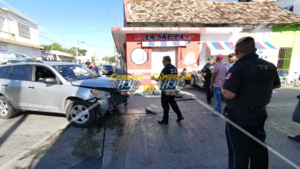 El aparatoso choque ocurrió alrededor de las 15:10 horas, sobre el cruce de la calle 37 por 26 de la Colonia Centro, lugar donde el conductor de una camioneta Toyota RAV4, color plata con matrícula de circulación 690-XRM del distrito federal, circulaba a exceso de velocidad sobre la calle 37, cuando al llegar al cruce con la 26 no respetó la preferencia de el conductor de un vehículo Mitsubishi eclipse, color gris con matrícula de circulación UTF-474-E del estado de Quintana Roo.