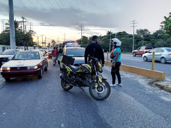 Ambas circulaban sobre la avenida isla de Tris de la calle Ángela Peralta hacia la glorieta del chechen cuando al llegar a las puertas del rastro municipal el guiador del vehículo Nissan march circulaba en el carril izquierdo, pero al haber una pipa de agua frente a él estacionada este por intentar esquivarla, volanteo bruscamente hacia el carril derecho realizándole un corte de circulación al motociclista.