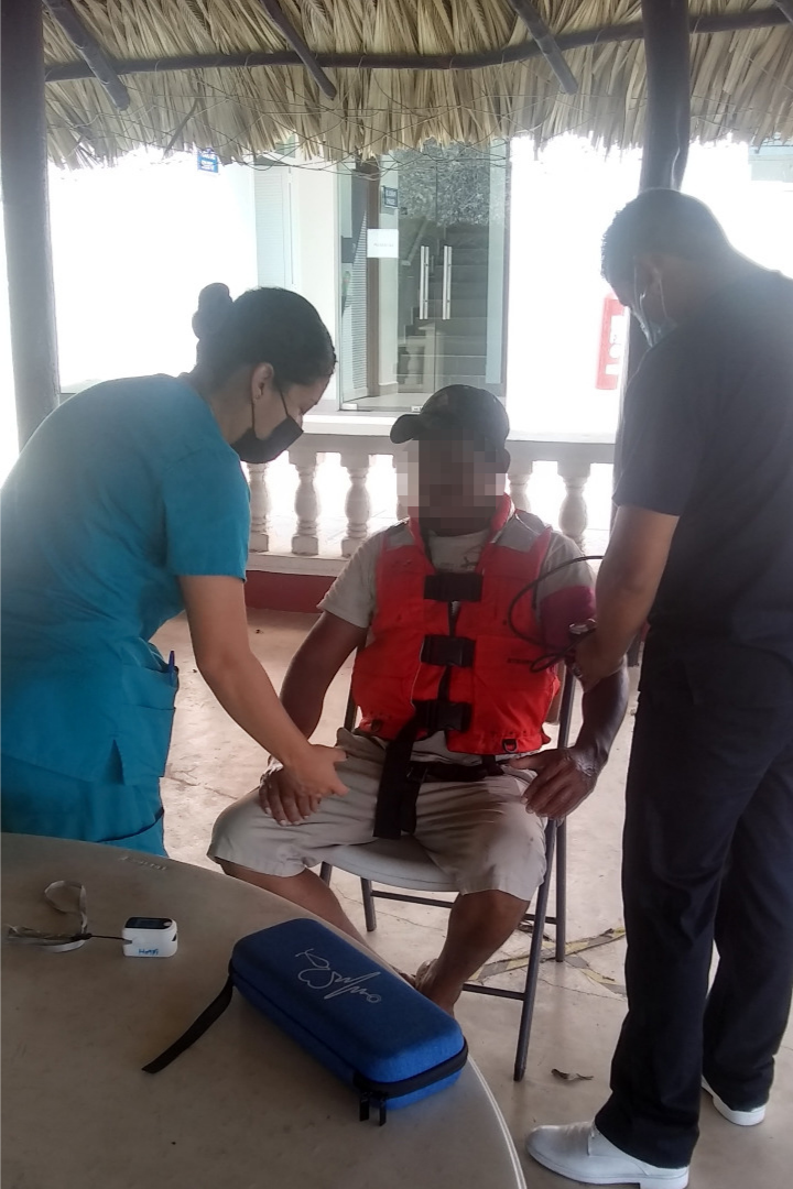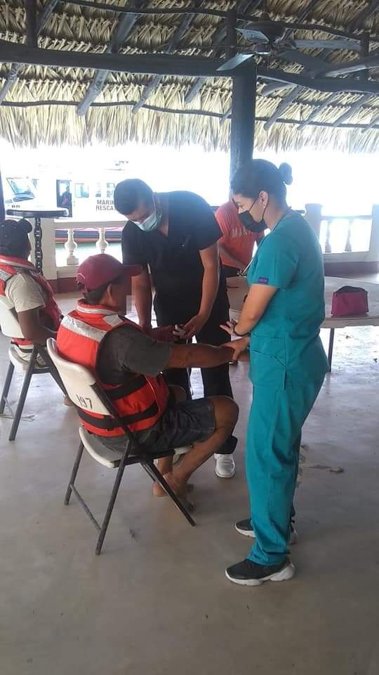 Una vez a salvo se les proporcionó atención médica por parte del personal de sanidad Naval, encontrándolos con deshidratación leve, siendo entregados a un representante de la cooperativa a la que pertenecen, retirándose por sus propios medios y su embarcación remolcada por otra embarcación de la misma cooperativa.