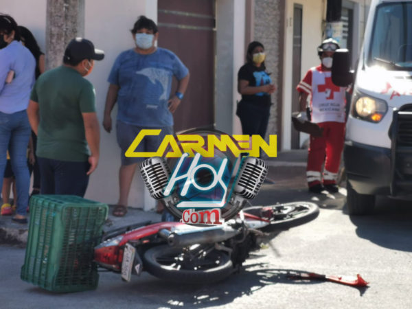 Un joven motociclista fue accidentado en calles del fraccionamiento camaroneros por la conductora de un automóvil particular quién a las prisas, se pasó un alto son precaución.