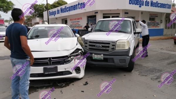 El aparatoso accidente ocurrió en punto de las 12:10, según la versión del conductor de la camioneta tipo Ford Ranger color blanca con matrícula de circulación XV-33-228 con registro en Yucatán, circulando sobre la calle 50 rumbo hacia la avenida 47 exactamente en el cruce de la 37 de la colonia Tecolutla.