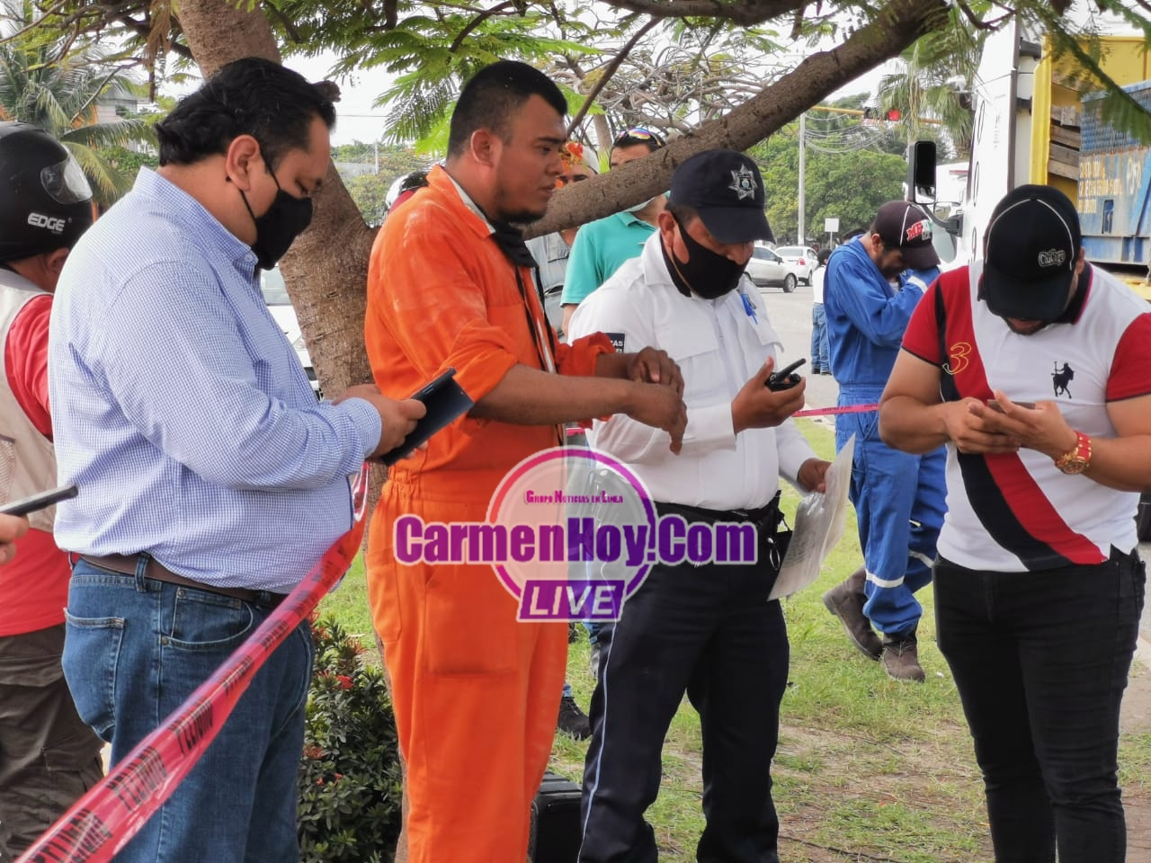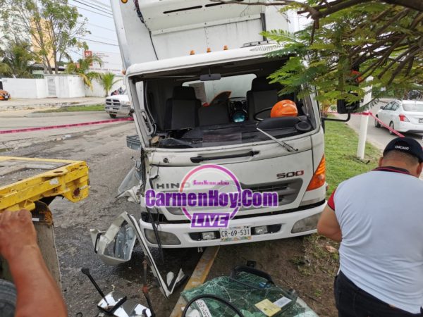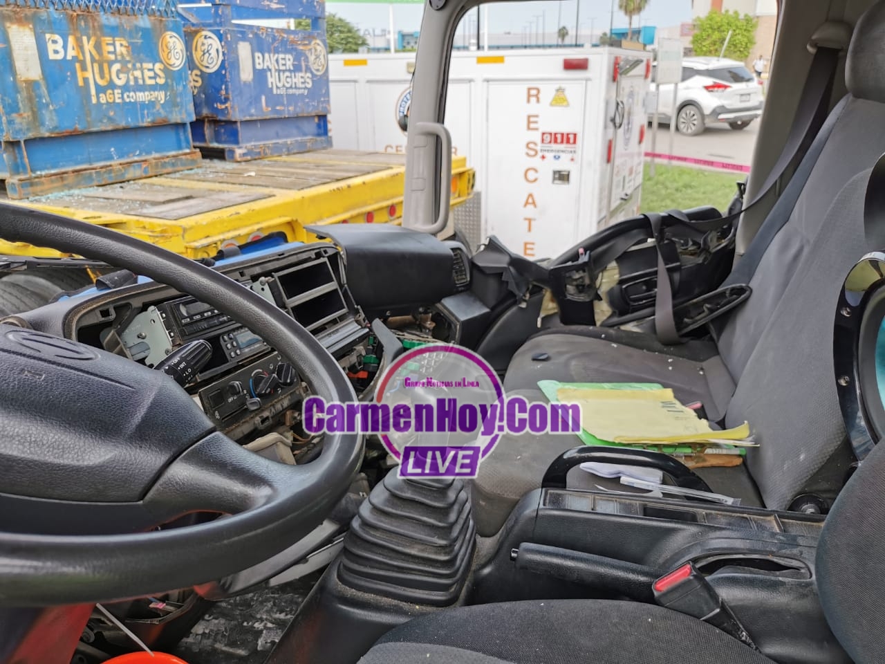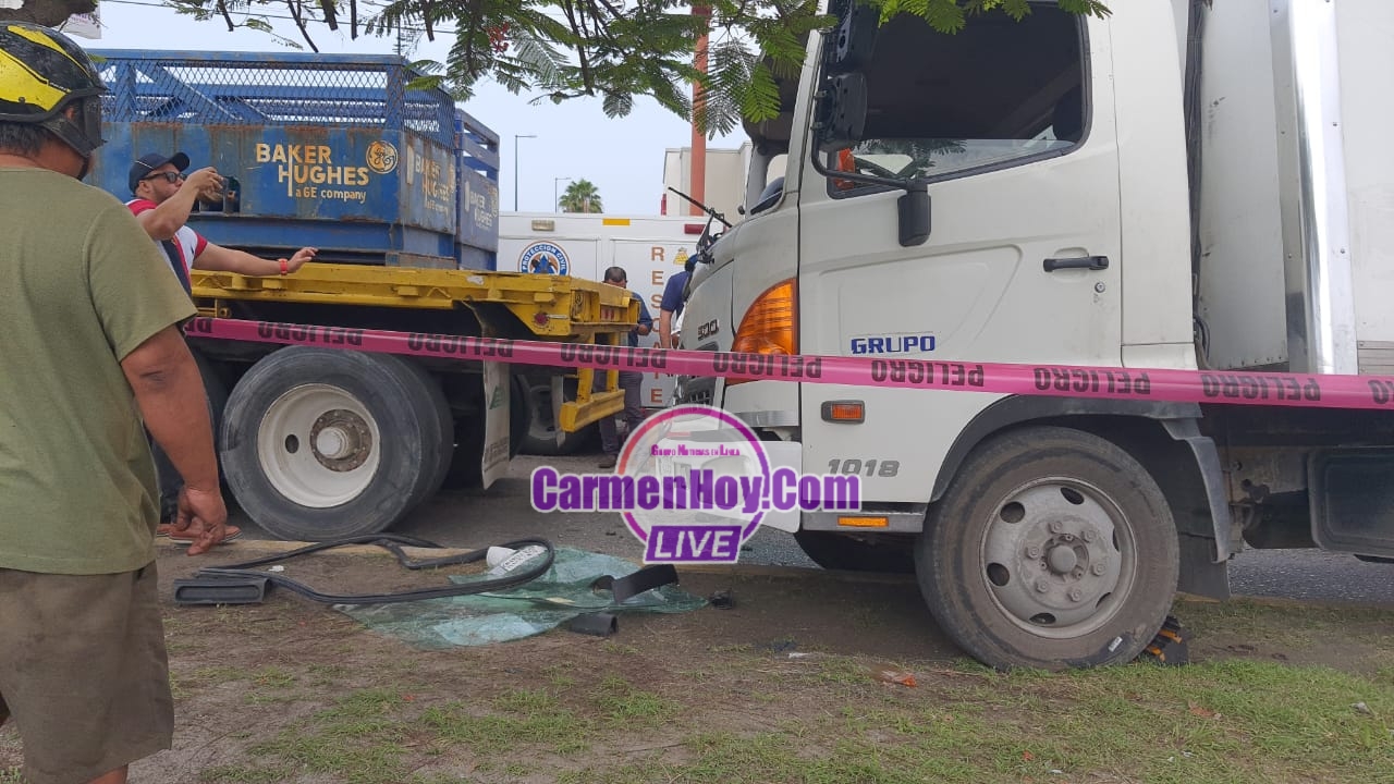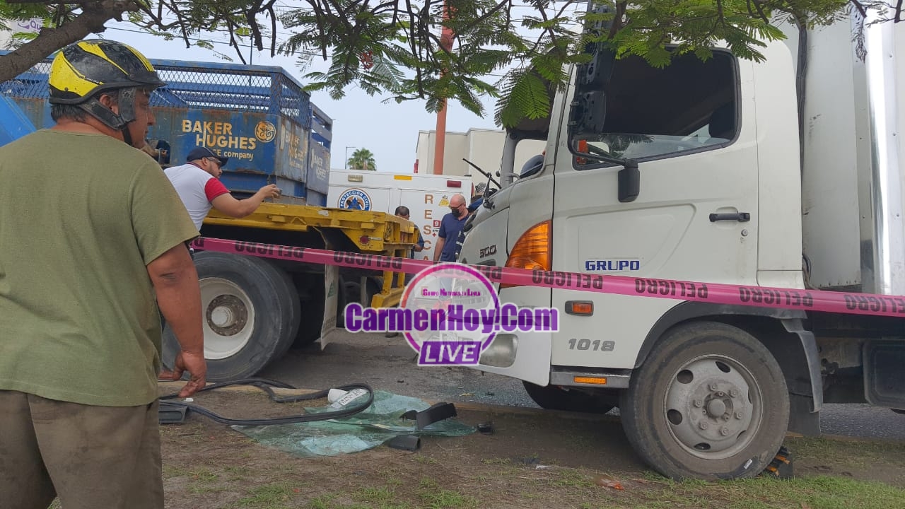 Dos jóvenes que se desplazaban abordo de un camión tipo HINO color blanco con caja frigorífica y matrícula de circulación CR-69-531 con registro en el Estado de Campeche, sobre la avenida isla de tris por río Candelaria y avenida Belisario Domínguez de la colonia Belisario Domínguez.
