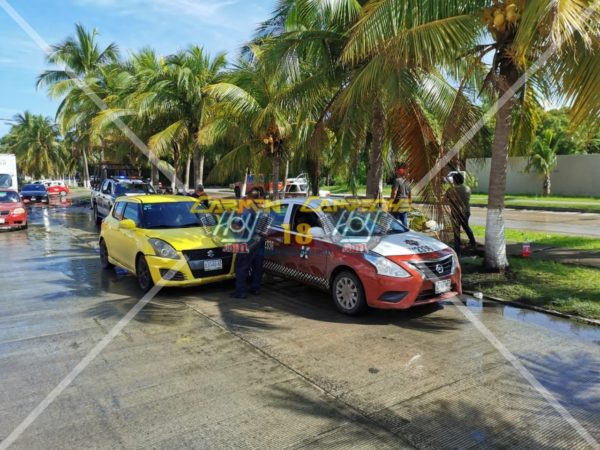 Por intentar librar una grúa estacionada el conductor de un vehículo Suzuki particular colisionó contra un taxi en calles de la colonia primero de Mayo, la colisión generó la obstaculización de un carril de circulación y afectaciones al tráfico vehicular.