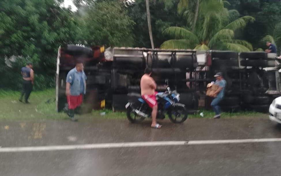rapiña trailer que transportaba cerveza sufre un percance saliendo de frontera con dirección a Ciudad del Carmen, los pobladores cercanos al lugar de la volcadura rápido emprendieron la “Ayuda” para sacar los cartones de cerveza, el conductor de la unidad salió como pudo.