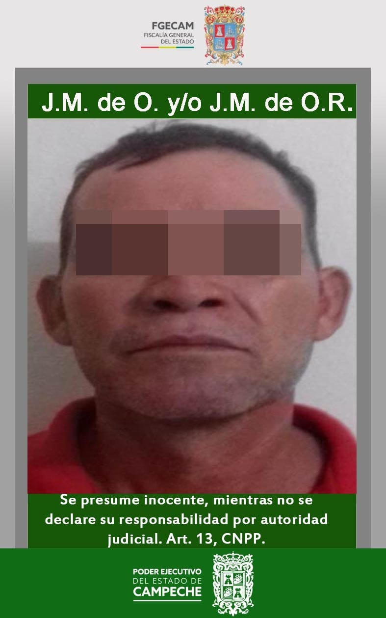 La Fiscalía General del Estado de Campeche (FGECAM), da a conocer que, mediante el Sistema Mixto, el Juez Primero del Ramo Penal del Segundo Distrito Judicial, dictó auto de formal prisión en contra de J.M. de O. y/o J.M. de O.R., como probable responsable del delito de homicidio calificado, en agravio de quien en vida respondiera al nombre cuyas iniciales son J.G.D.D., asentado en el expediente 222/11-2012/2P-II.