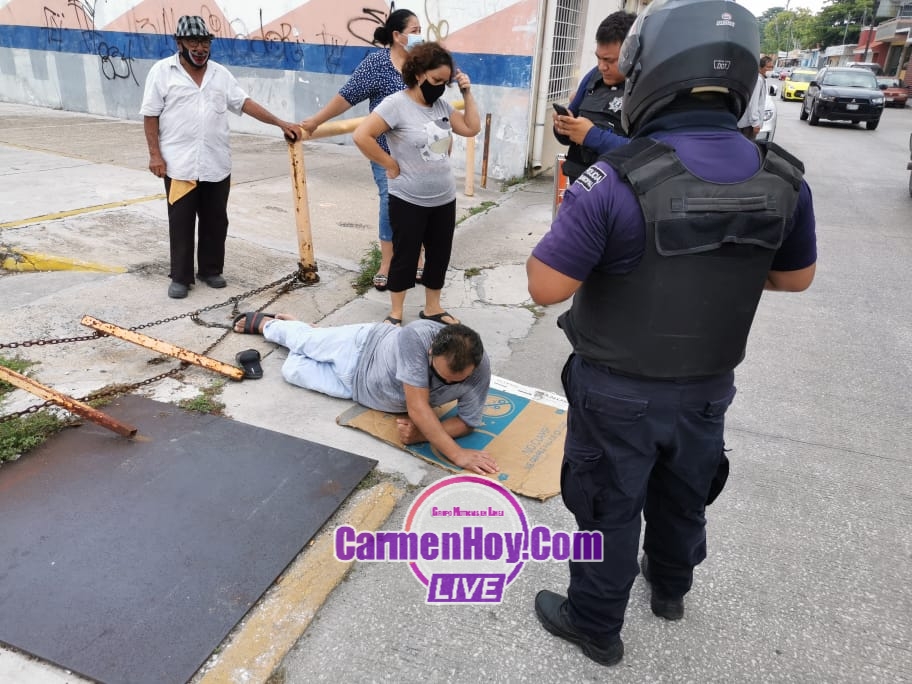 El hombre luego de caer, quedó reclinado boca abajo sobre su costado izquierdo, gritando de dolor y desesperación alzaba las manos pidiendo ayuda, hasta que una buena samaritana que se dio cuenta se acercó corriendo rápidamente para brindarle los primeros auxilios y solicitar más ayuda a más ciudadanos mismos que se encargaron de solicitar la presencia de una ambulancia.
