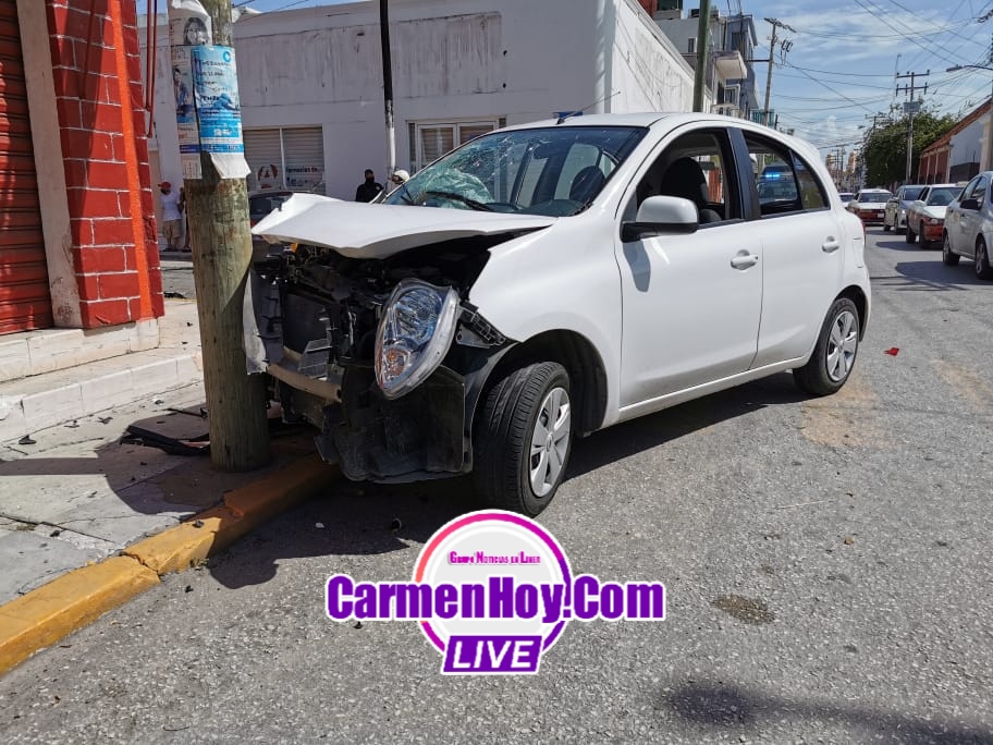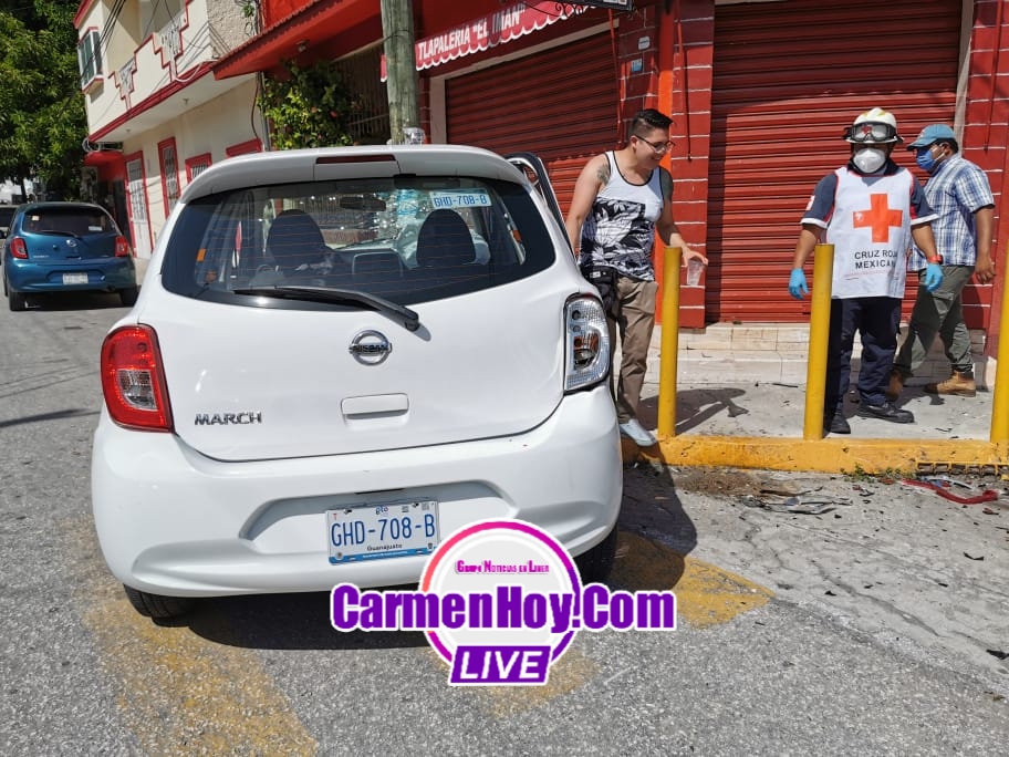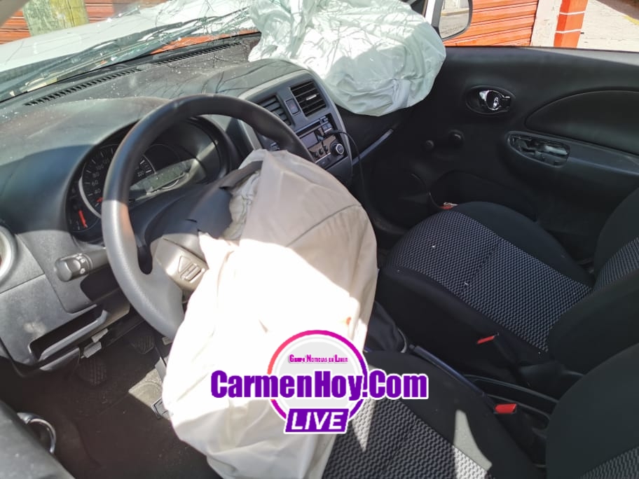 El siniestro se registró esta tarde siendo los presuntos responsables dos sujetos que tripulaban un vehículo tipo Nissan march color blanco con matrícula de circulación GHD-708-B del estado de Guanajuato mismo que según ellos era rentado a la arrendadora de autos “Alamo” situada en el interior de el aeropuerto de ciudad del Carmen.